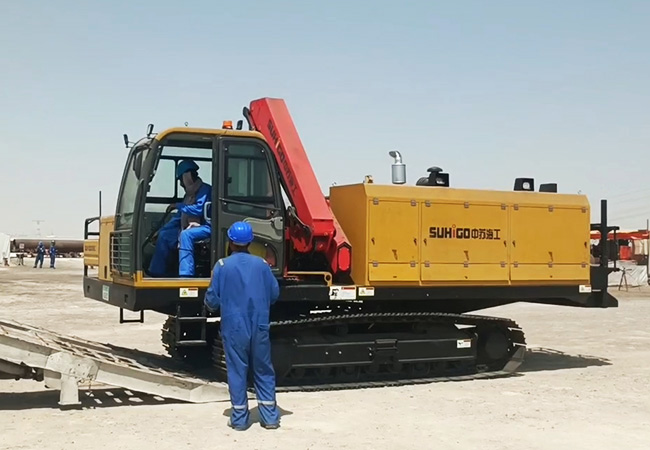 阿聯(lián)酋地區(qū)氣候炎熱,夏季氣溫常高達50攝氏度以上,加之沙塵環(huán)境復雜,對工程設(shè)備的性能提出了高要求。中蘇海工履帶吊管機以其強大的動力系統(tǒng)、高效的散熱設(shè)計以及堅固的結(jié)構(gòu),完美適應(yīng)了這些挑戰(zhàn),確保了施工的高效性和連續(xù)性。設(shè)備在高溫環(huán)境下運行穩(wěn)定,操作靈活,極大地提升了施工效率,贏得了現(xiàn)場施工人員的一致好評。