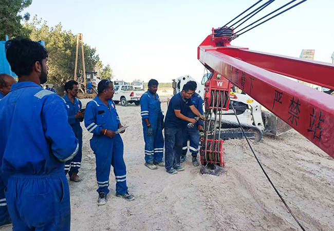 三臺吊管機成功交付客戶后,公司精心選派經(jīng)驗豐富的工程師遠赴海外進行指導和培訓工作。服務(wù)人員憑借扎實的專業(yè)知識、豐富的實踐經(jīng)驗向客戶詳細介紹了吊管機的操作原理、維護要點以及組裝安裝注意事項等多方面內(nèi)容。在培訓過程中,工程師對客戶提出的每一個問題都給予了耐心解答,通過實際操作演示、理論講解相結(jié)合的方式,讓客戶能夠迅速掌握吊管機相關(guān)知識和技能。